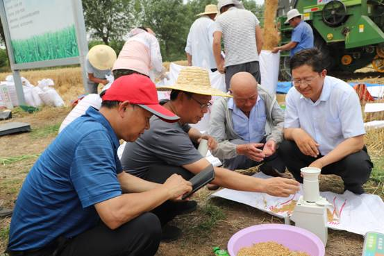 在郯城泉源镇“临麦9号”高产创建田,由山东省种子管理总站、山东省农科院、山东省农业大学、临沂市农业农村局五人专家组对临麦9号进行实打,经过丈量、机械收获脱粒、称重、水分测定、取样测定杂质率等环节,形成验收意见。实打面积3.05亩,收获小麦总籽粒鲜重2705.84公斤,杂质率2%,平均水分含量17.8%,按13%的标准含水量折算,临麦9号亩产达到821.5公斤。