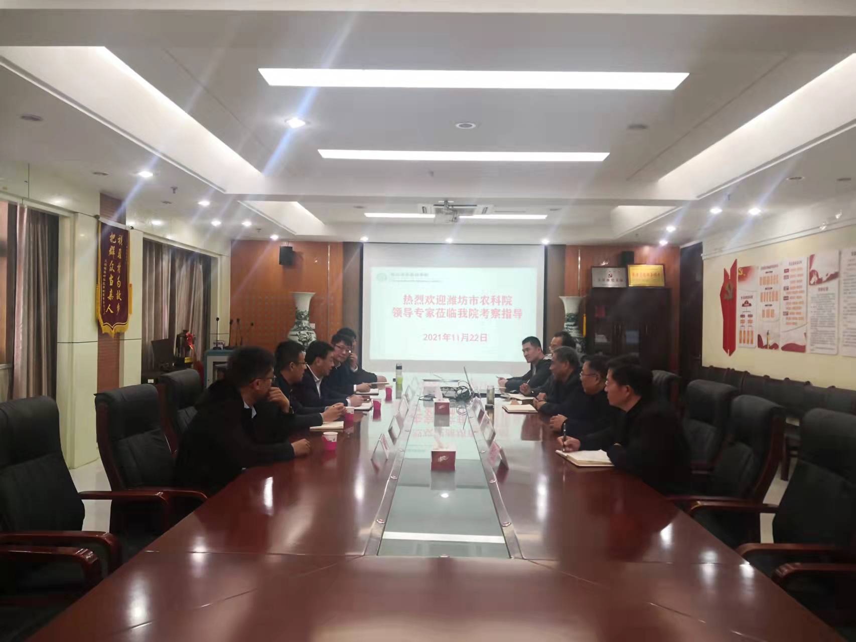 11月22日下午,潍坊市农科院党委书记陶金先等一行5人到我院调研,交流推进科研体制机制改革、产学研合作、科技成果转化及科技服务等方面工作,市农科院党委书记周绪元及有关科室负责人陪同调研。