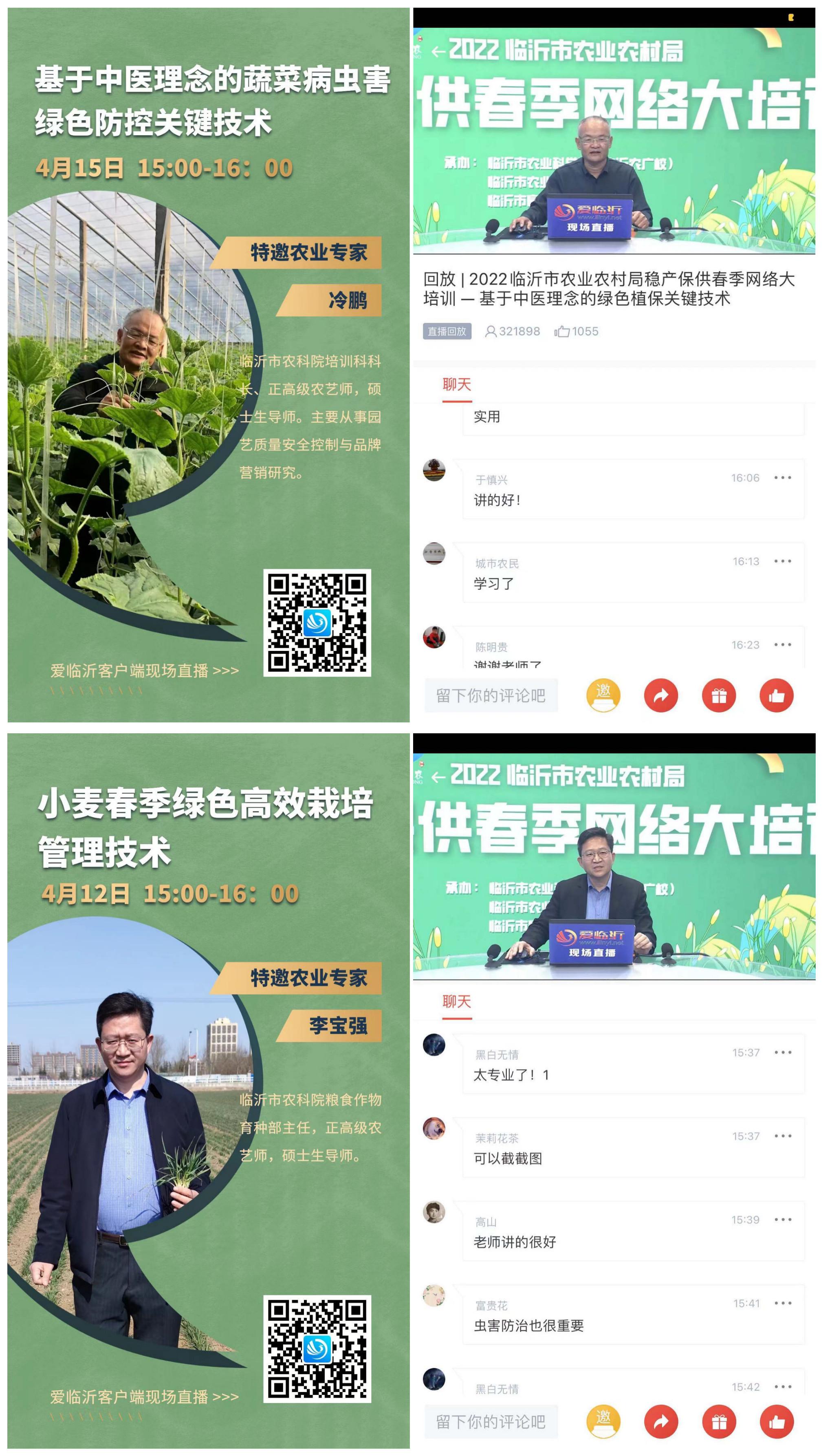 为实现农业生产防疫两不误,临沂市农科院(农广校)充分发挥远程教育培训优势,开展“稳产保供春季网络大培训”,组织有关专家直播授课,“线上面对面”精准高效服务,答疑解惑,为农户开展各项生产管理、抓好稳产保供工作提供强有力的技术指导和支撑。
