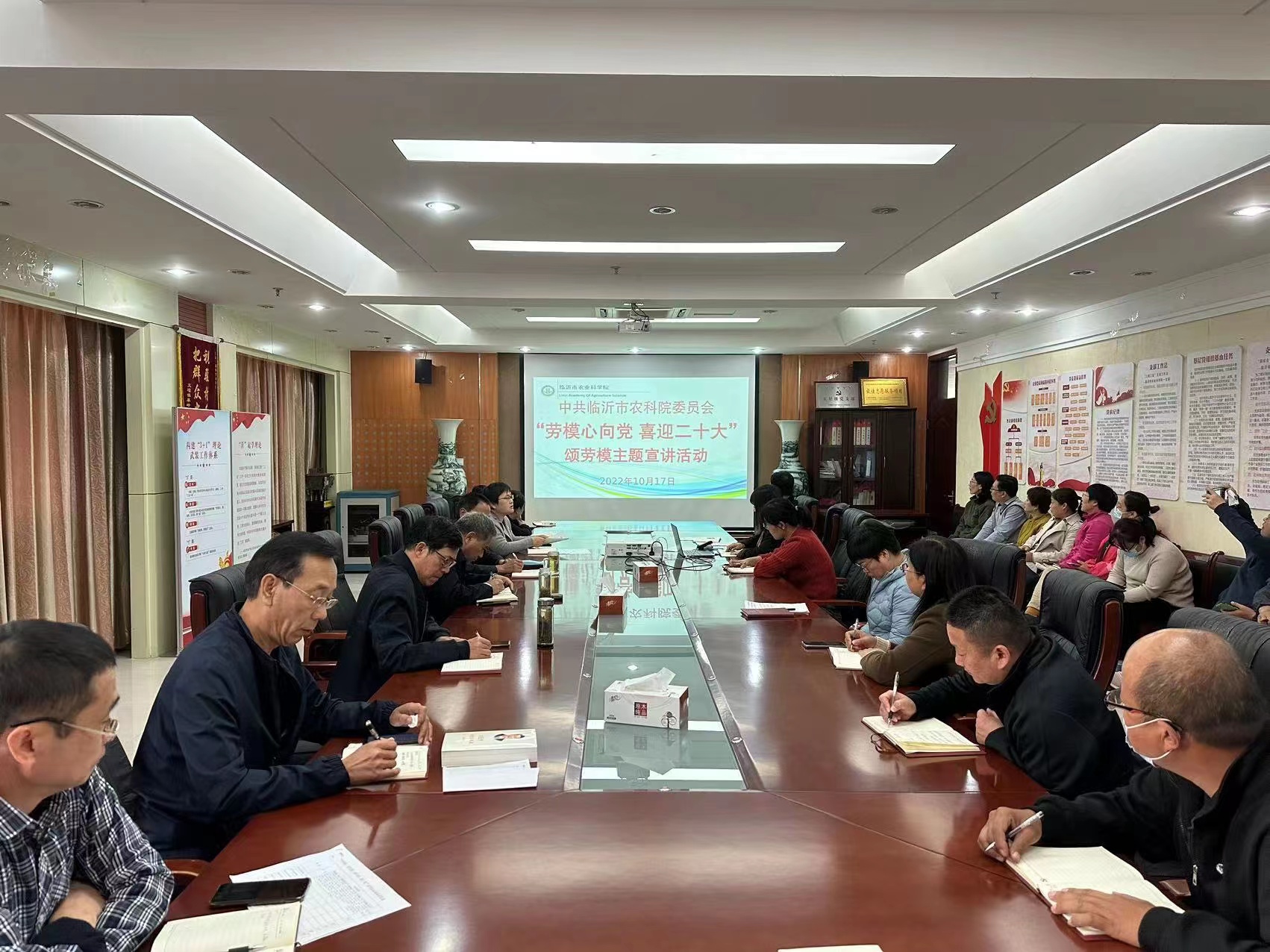 为庆祝党的二十大胜利召开,大力弘扬劳模精神、劳动精神、工匠精神,按照临沂市总工会《关于深入开展“劳模心向党 喜迎二十大”活动的通知》要求,10月17日,临沂市农业科学院开展“劳模心向党喜迎二十大”颂劳模主题宣讲活动。