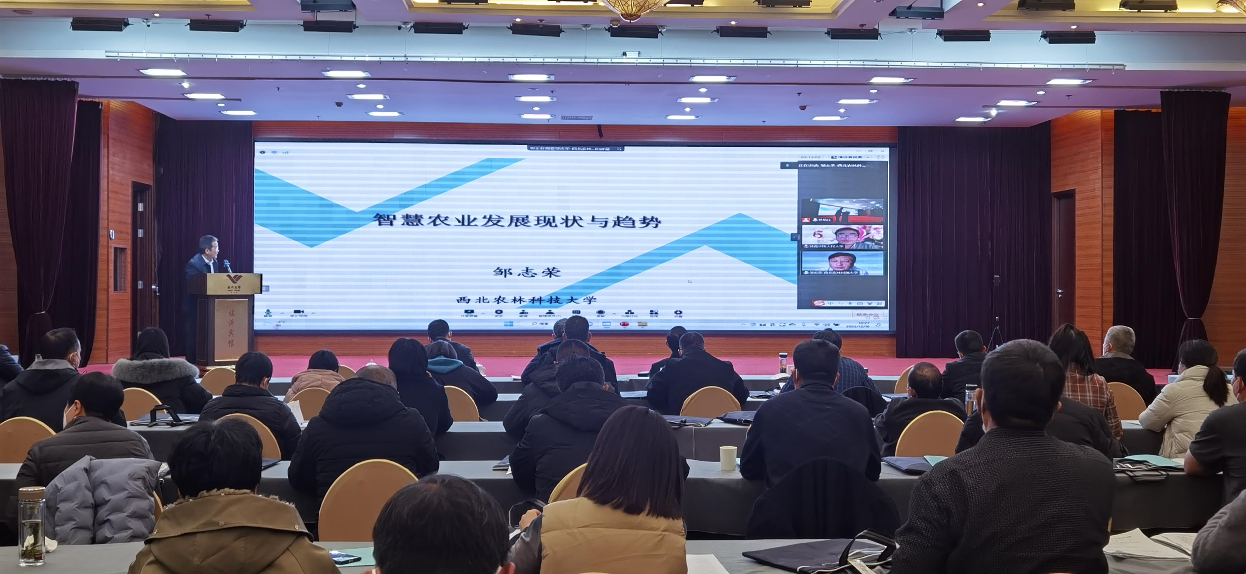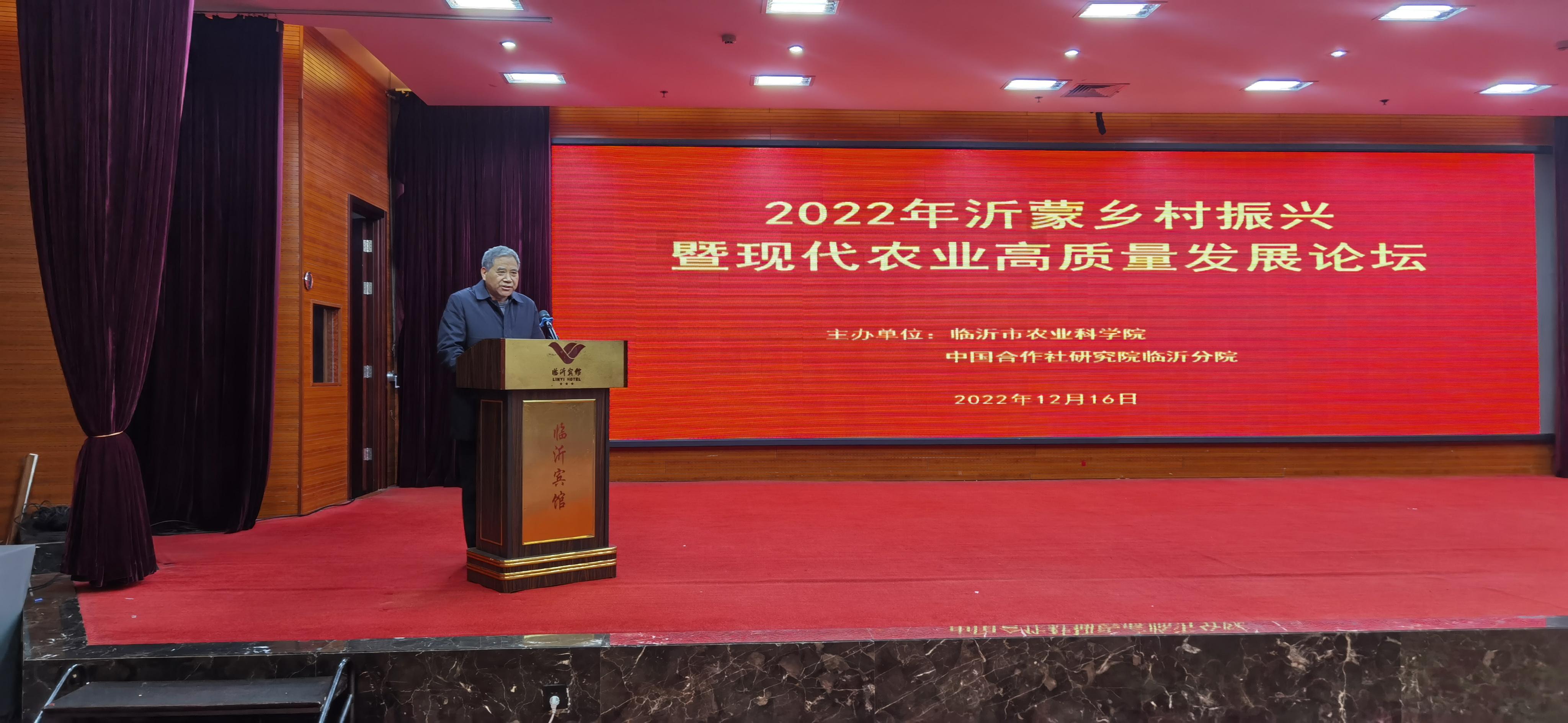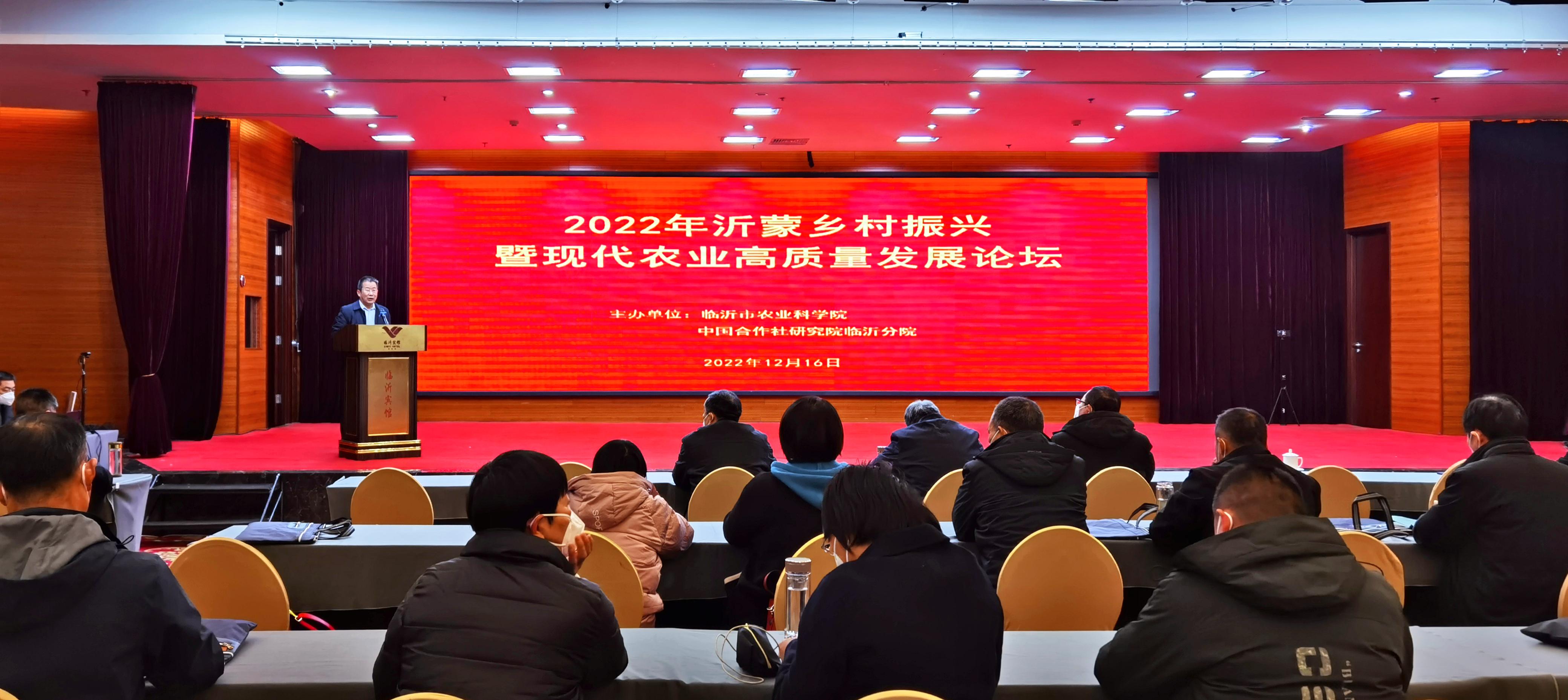 为深入学习贯彻党的二十大提出的关于全面推进乡村振兴、加快推进农业农村现代化的工作部署,汇聚推进乡村振兴的智慧和力量,扎实做好新时代、新征程临沂“三农”工作。12月16日,2022年沂蒙乡村振兴暨现代农业高质量发展论坛以线上线下相结合的形式在临沂举行。本次论坛由临沂市农业科学院、中国合作社研究院临沂分院共同主办。山东农业大学食品学院张仁堂教授,我院党委书记、二级研究员周绪元、院长张学兵、副院长孙志智出席论坛,论坛由张学兵院长主持。中国合作社研究院副院长、中国人民大学农业与农村发展学院副院长、博士生导师钟真教授和西北农林科技大学原园艺学院院长、博士生导师邹志荣教授线上做主题报告。来自临沂市、县、乡“三农”工作骨干和科研人员80余人参加了本次论坛。
