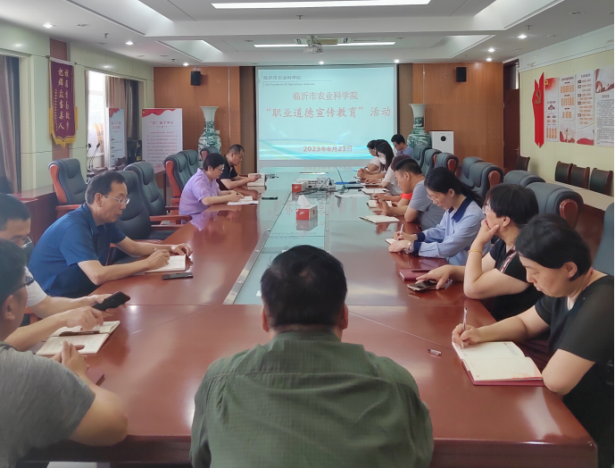 为提升我院职工的职业道德素养,引导干部职工树立正确的职业道德观,树立“爱岗敬业、诚实守信、办事公道、服务群众、奉献社会”的职业道德理念,自觉践行社会主义核心价值观,6月21日临沂市农业科学院于三楼会议室召开了职业道德宣传教育专题会议。