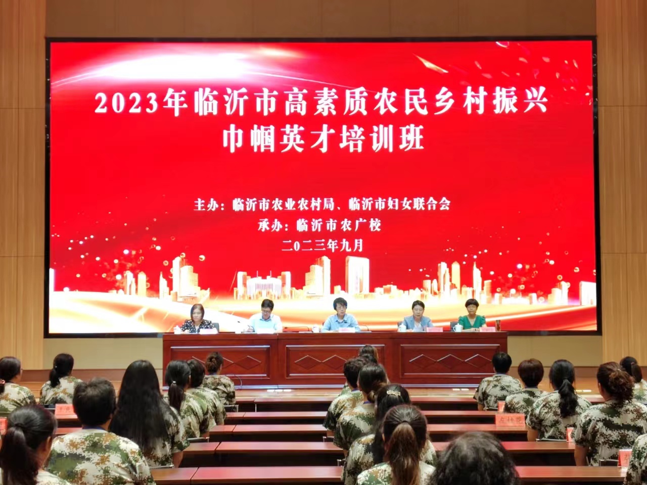 由临沂市农业农村局和临沂市妇女联合会主办,市农科院(农广校)承办的临沂市高素质农民乡村振兴巾帼英才培训班于2023年9月8日至14日在兰陵新农人培训基地隆重举行。市农科院(农广校)党委副书记、院长张学兵,市妇联三级调研员汪静,市农科院(农广校)党委委员、副院长怀德良,兰陵县政府副县长任力等出席培训班有关活动,来自罗庄、河东、兰陵、沂水、蒙阴、沂南的100名优秀高素质女农民参加培训。