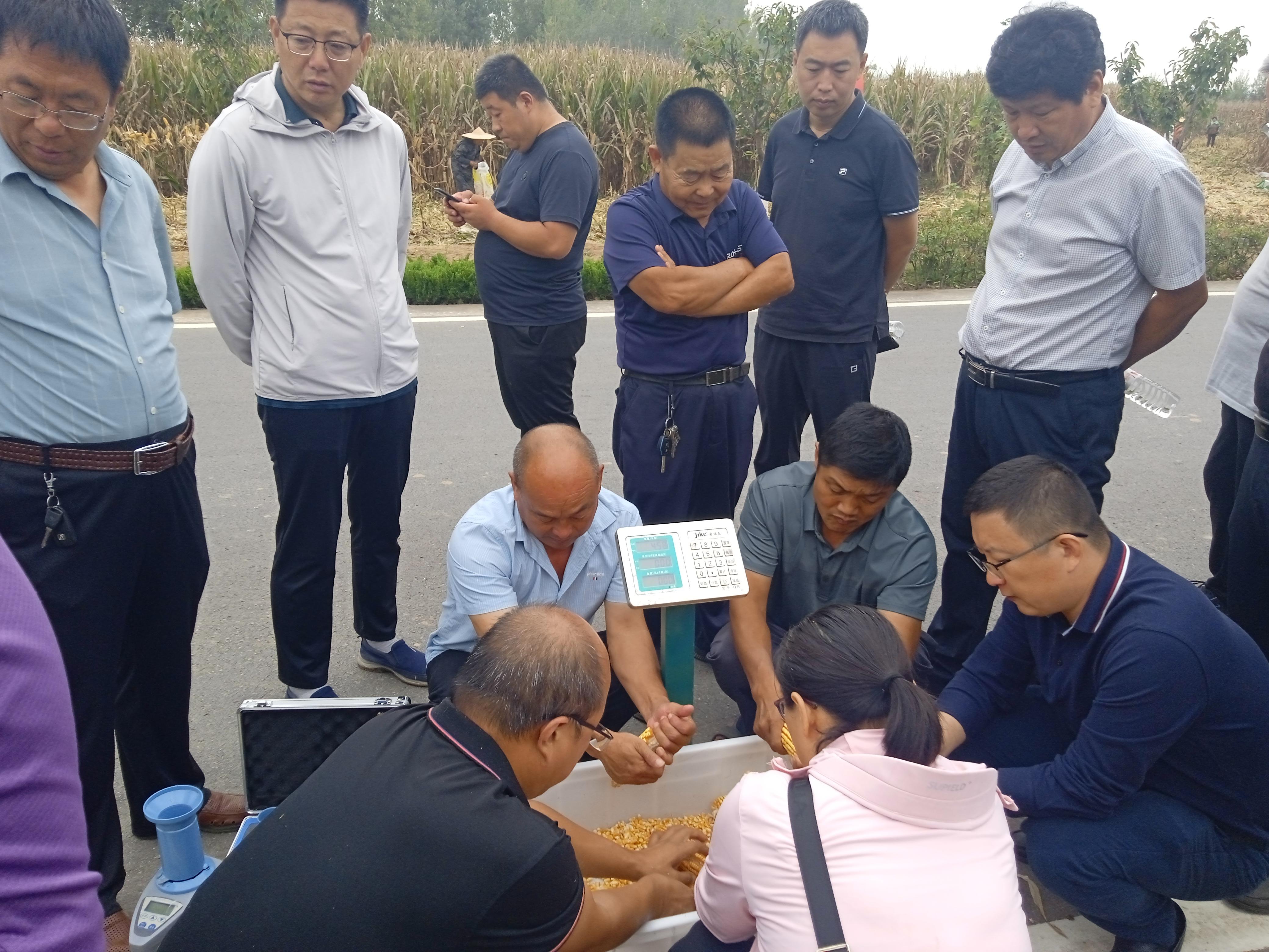 项目区位于山东省临沂市费县东蒙镇石沟村,依据农业农村部玉米专家指导组和全国玉米栽培学组共同制定的《关于玉米高产、超高产田间测产验收方法和标准》进行实收。在示范田中随机连片选取4.87亩进行机械收获,称果穗重。随机选取60个果穗测定出籽率为83.3%;用"PM-8188"型谷物水分测定仪测定。