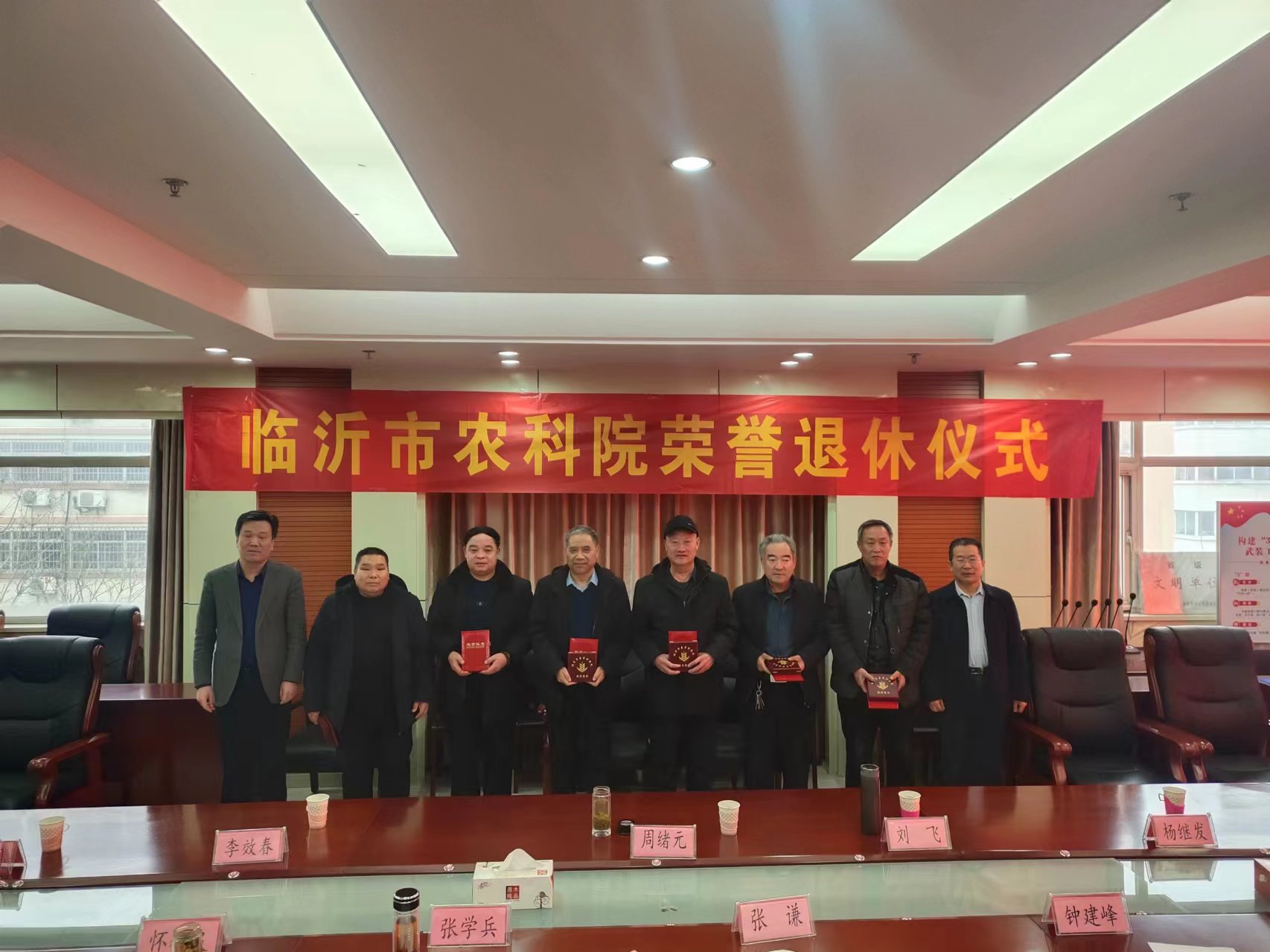 会上,院主要领导为退休干部职工颁发退休纪念章和光荣退休证书。
