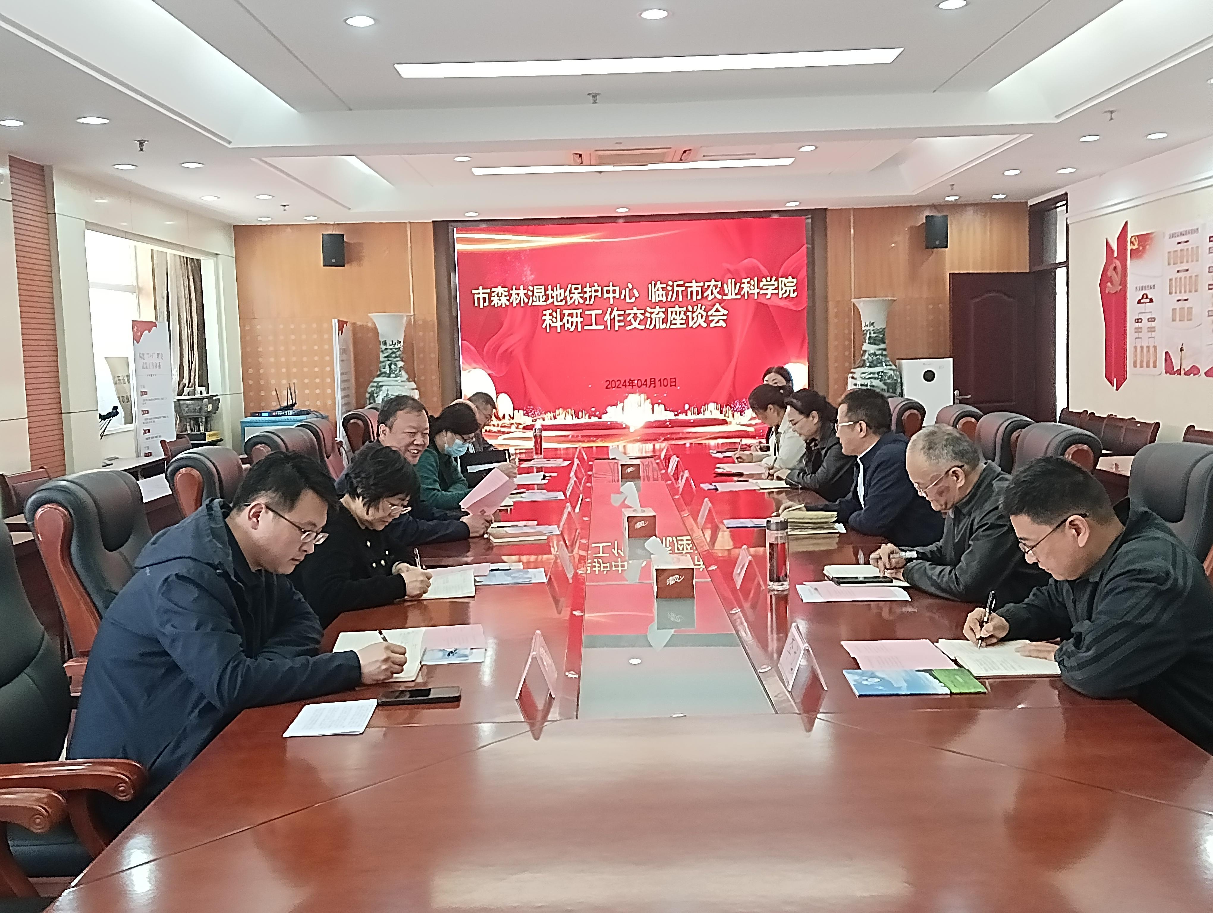 2024年4月10日上午,市森林湿地保护中心杨俊民主任一行六人到我院开展科研工作交流,市农科院相关领导及有关科室负责人陪同座谈。