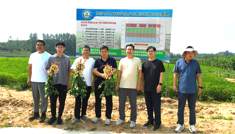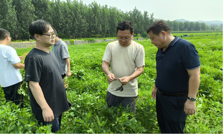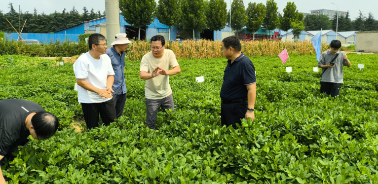 2024年08月16日,省花生产业体系遗传育种岗位专家李文金、栽培与土壤肥料岗位专家董元杰及病虫害防控与质量安全岗位专家赵海朋到临沂市农业科学院开展花生生产调研指导。
