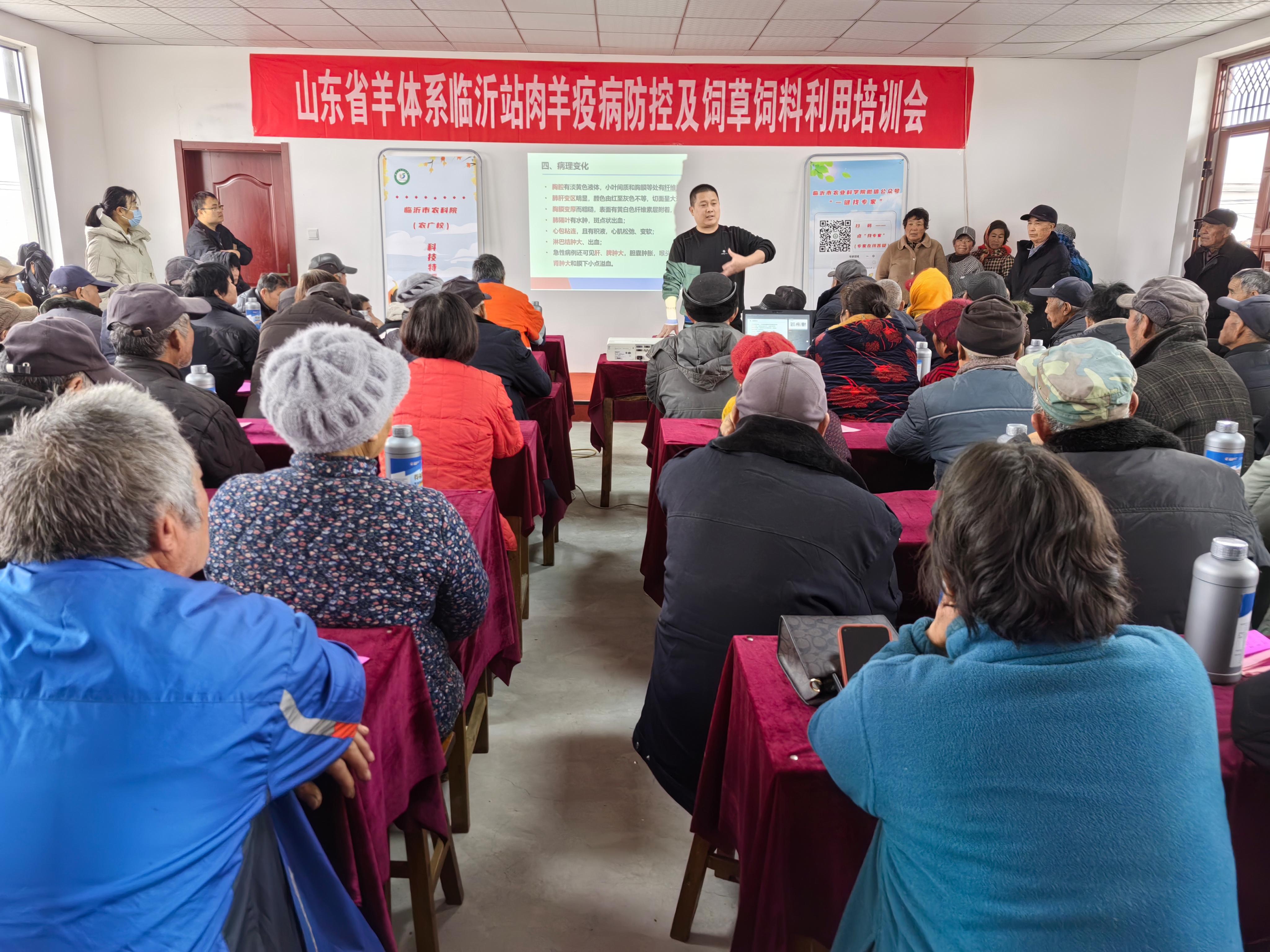 为切实解决当前肉羊养殖生产遇到的问题,提升中小规模养殖场户肉羊疫病防控技术水平及饲草料资源利用率,2025年3月11日,在费县探沂镇召开由临沂市农业科学院、临沂大学与临沂市畜牧发展促进中心联合举办的肉羊疫病防控与饲草饲料利用技术培训会。本次培训特邀山东省羊产业技术体系岗位专家、山东农业大学魏凯副教授,山东省畜牧总站、山东省畜牧协会翟桂玉研究员分别作专题报道。费县探沂镇及周边乡镇肉羊养殖场户等130余人参加培训。