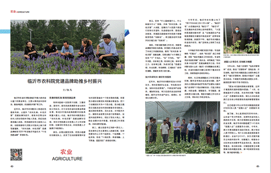 近日,《中国品牌》杂志2020年第10期以“临沂市农科院党建品牌助推沂蒙乡村振兴”为题,从“完善体制机制,党建工作成科研助推器”“加大科研攻关,农业技术取得长足进步”“科技人员进园入企,现场解决疑难问题”三个方面对我院党建品牌创建经验进行报道。