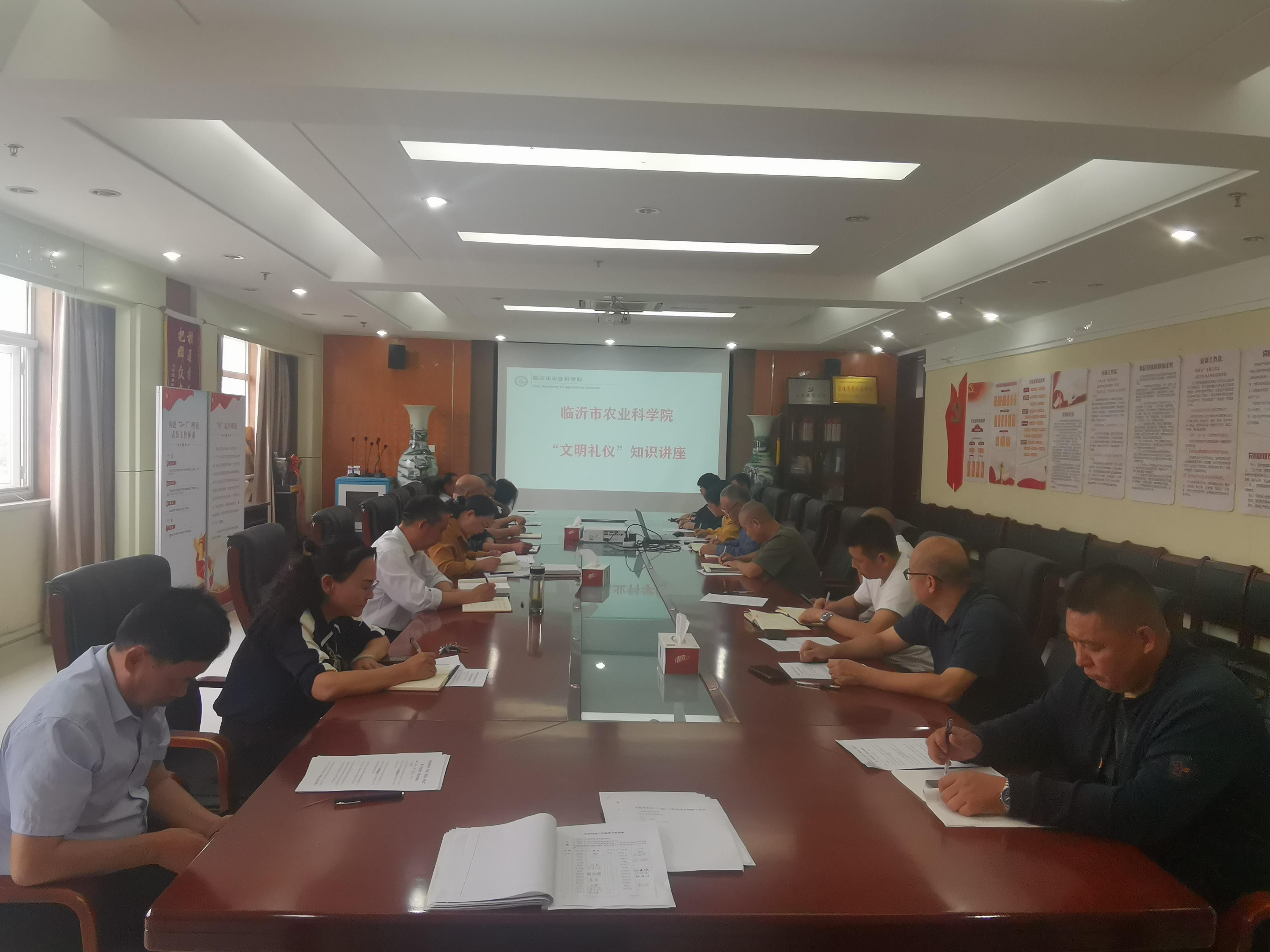 为深入推进文明创建工作,进一步提高干部职工文明素质,普及文明礼仪知识,提升文明形象和服务水平,进一步规范公务文明礼仪,提高科研工作者文明礼仪素养、服务水平、塑造良好的个人形象,2022年9月26日,临沂市农科院在院三楼会议室举办文明礼仪知识讲座。