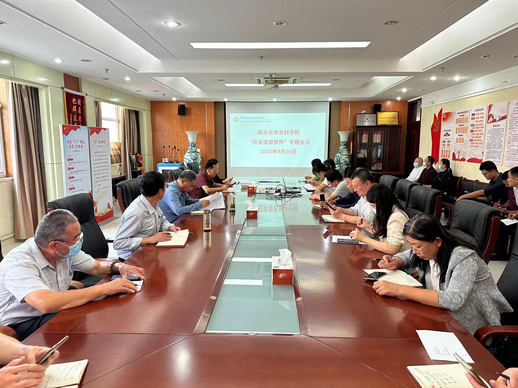 为深入学习贯彻党的十九大精神,大力弘扬劳动精神、劳模精神、工匠精神,积极培育和践行社会主义核心价值观,增强职工为民服务意识,倡导“爱岗敬业、诚实守信、服务群众、奉献社会”的职业道德,打造高素质文明单位职工。9月26日临沂市农业科学院于三楼会议室召开了职业道德宣传教育专题会议。